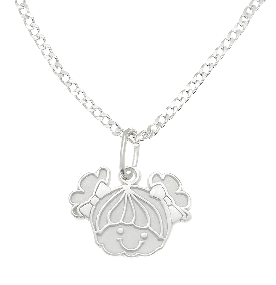 DIJE CON CADENA CARITA DE NIÑA EN PLATA LEY .925
