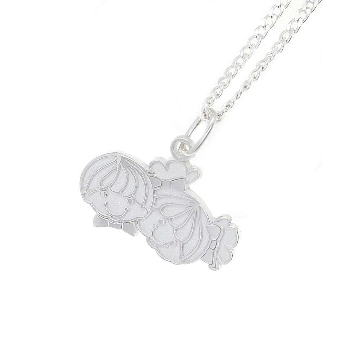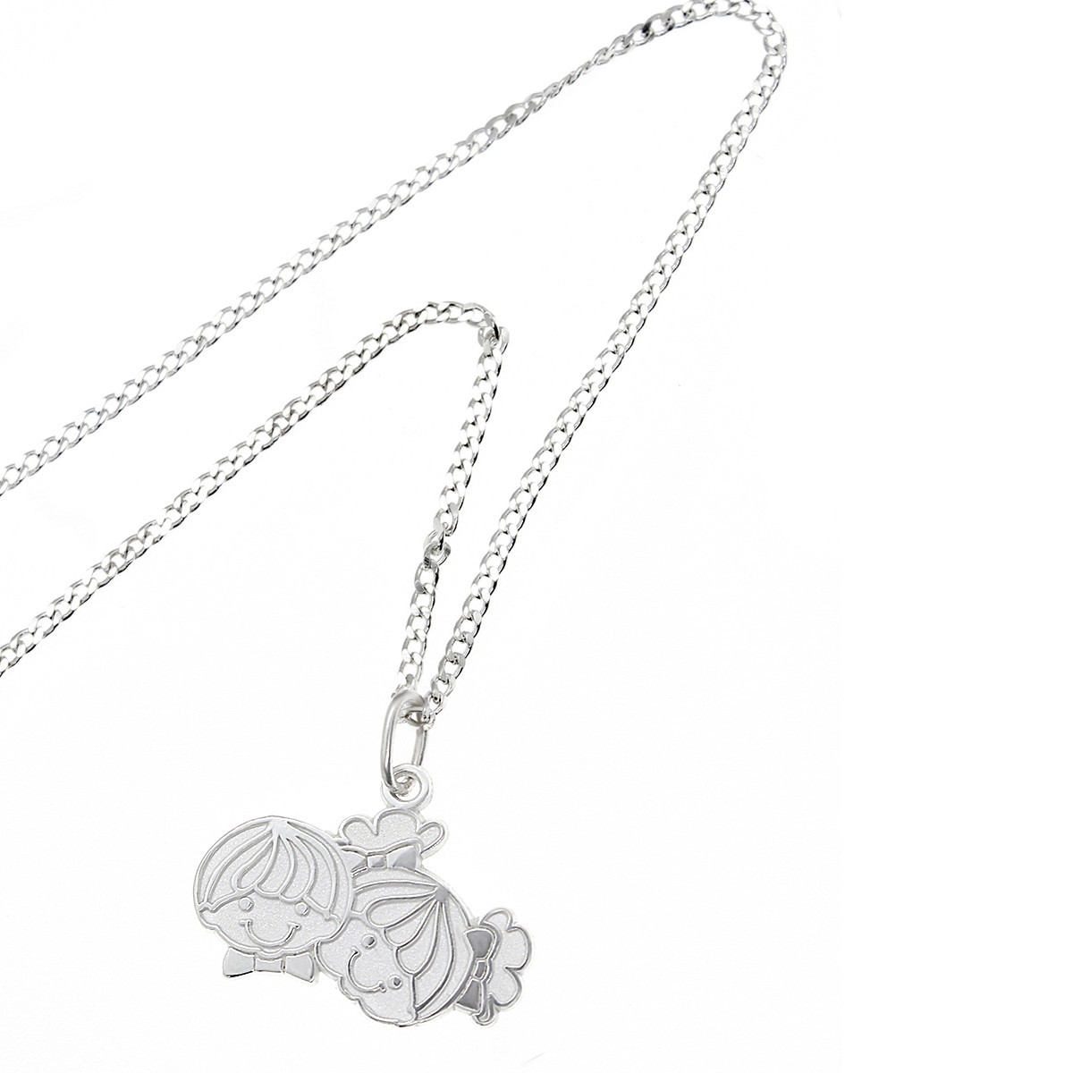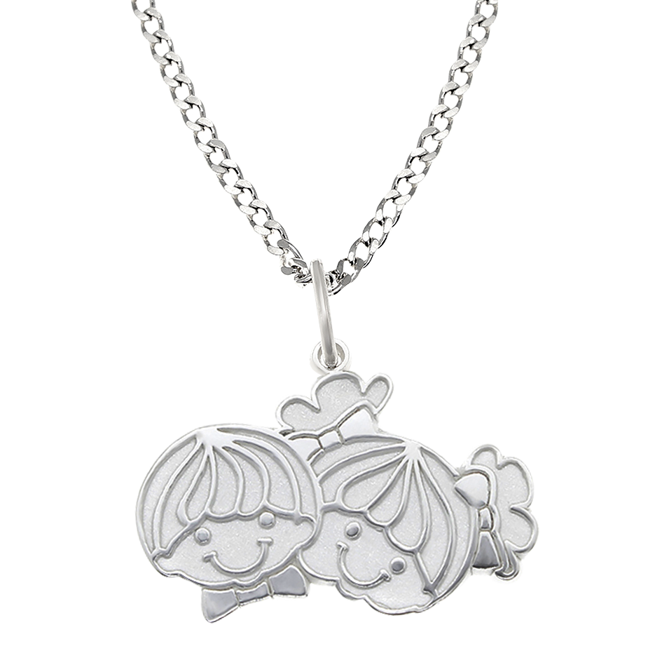 DIJE CON CADENA CARITA DE NIÑO Y NIÑA EN PLATA LEY .925