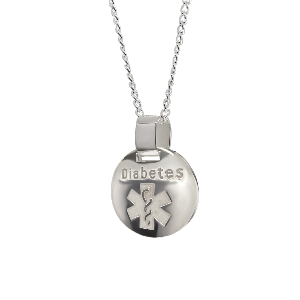 DIJE IDENTIFICADOR PARA DIABETICO REDONDO EN PLATA LEY 0.925