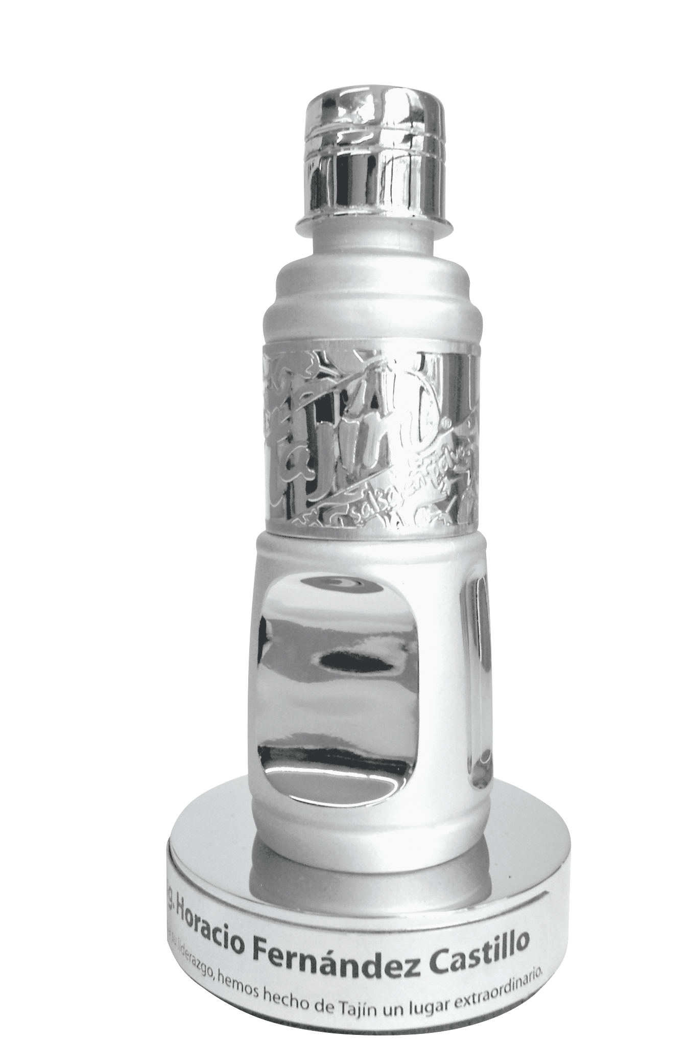 Escultura vaciada a la cera perdida en alto relieve em metal rex baño de níquel montada en base de solera de latón redonda con baño de níquel y placa personalizada
