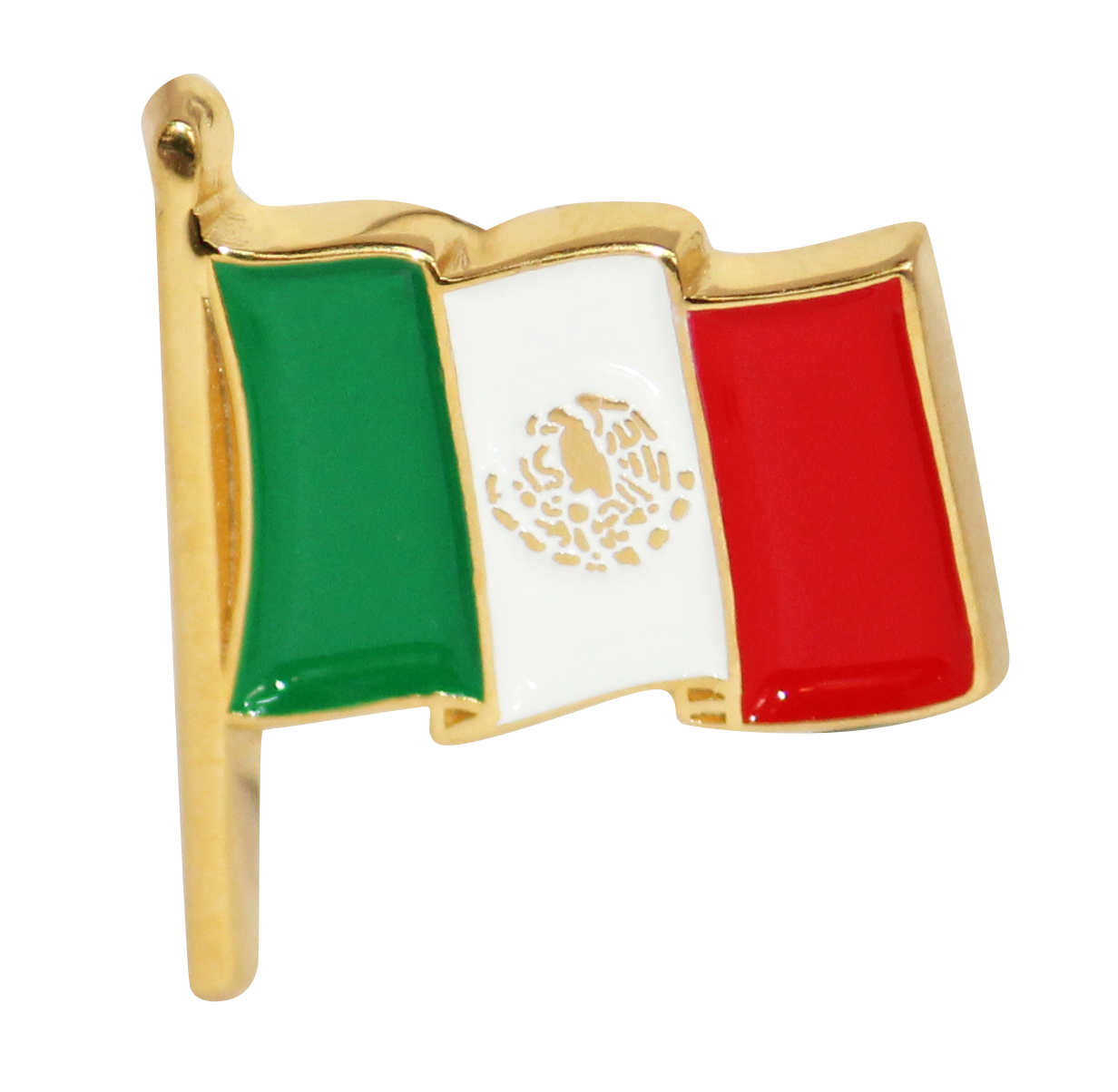 FISTOL O PIN BANDERA MEXICO MEDIDA DE 20 x 18 mm CON ASTA TERMINADO EN BAÑO DE ORO CON APLICACIÓN DE TINTAS