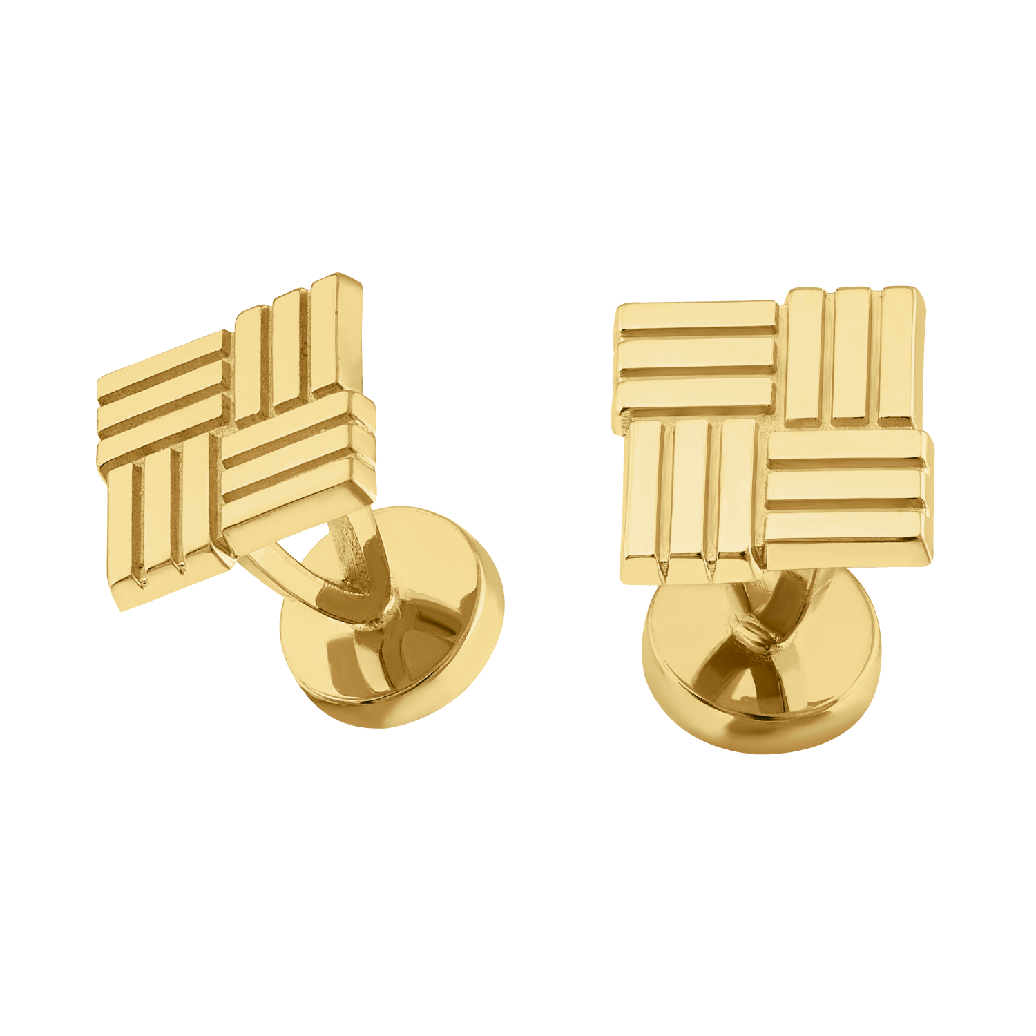 Par de mancuernillas vaciadas a la cera perdida en alto relieve con broche de pastilla en metal rex baño de oro medida de 20mm