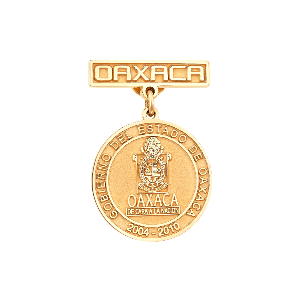 Medalla vaciada a la cera pedida en alto relieve con medida de 37mm de diámetro con placa de 37×8 mm en metal rex con baño de oro