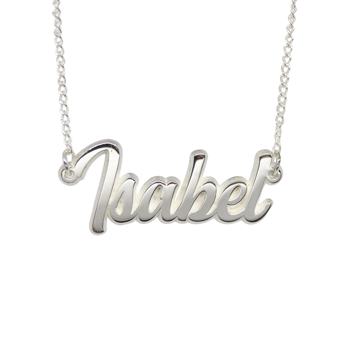 DIJE CON CADENA DEL NOMBRE ISABEL EN PLATA
