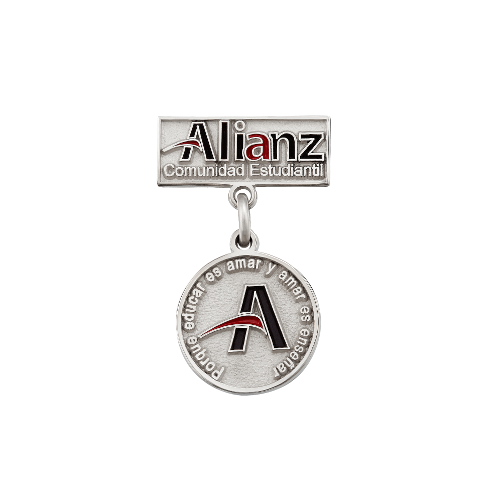 Medalla vaciada a la cera perdida en alto relieve con medida e 22mm de diámetro con placa de 27x11mm en metal rex con baño de níquel y aplicación de tintas