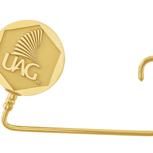 Porta bolso en alto relieve con medida de 40mm por 2mm de espesor con gancho de 90mm en metal rex con baño de oro de 22k