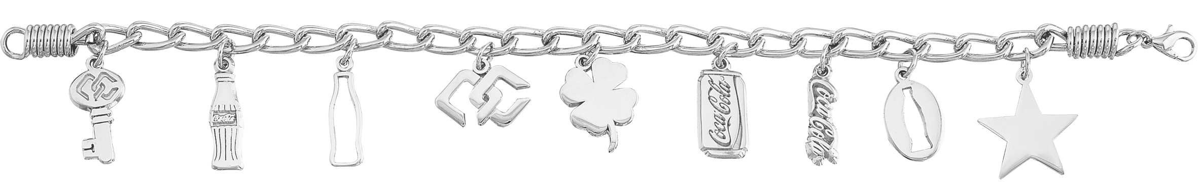 Pulsera con 9 dijes con medida 15mm en metal rex baño rodio con medida de largo de 18 cm