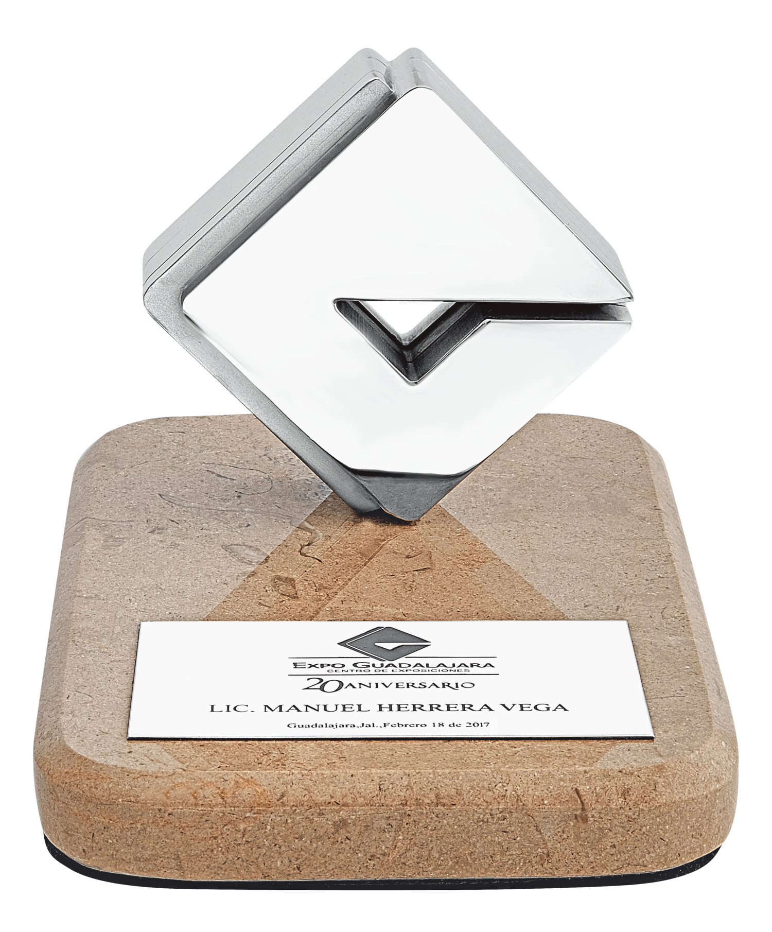 Reconocimiento con moneda vaciada a la cera perdida en alto relieve en metal rex baño níquel con medida de 95x85x30mm montada en base de mármol blanco de 185x125x20 mm con placa personalizada